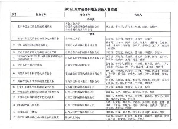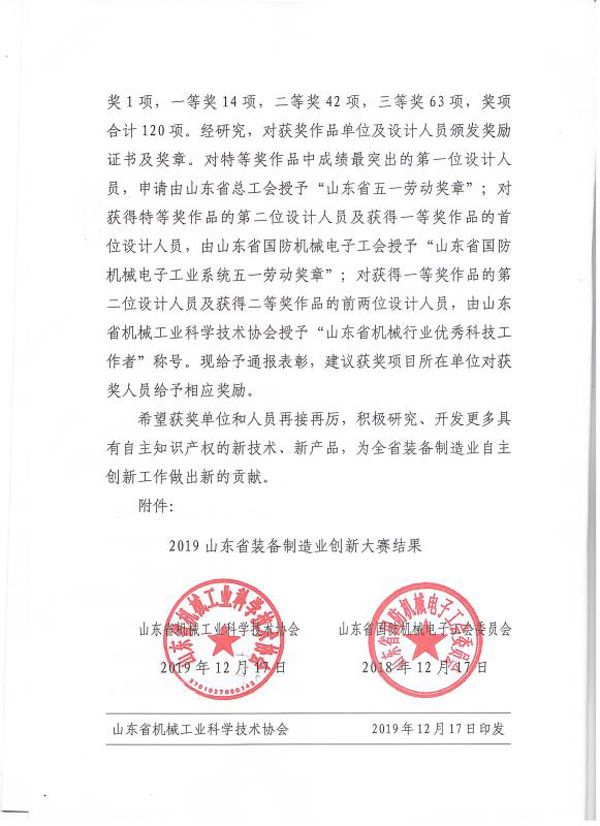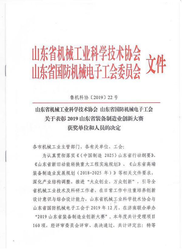 山东省装备制造业创新大赛二等奖